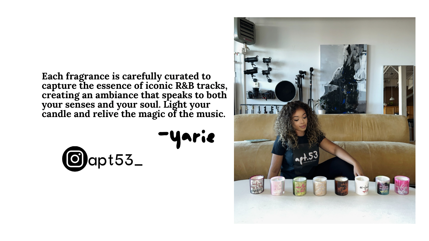 Our scents are inspired by the smooth sounds of R&B, creating an atmosphere that feels intimate, nostalgic, and effortlessly smooth. Light up, press play, and let the fragrance take you there.